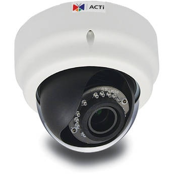 Модель ACTi E62A с вариофокальным объективом предназначается для монтажа внутри помещений. Она обладает высокой надёжностью и способна вести запись даже при практически полном отсутствии освещения. Этому способствует КМОП матрица (размер 1/3.2") с высоким показателем чувствительности. В цветном режиме можно получить разборчивую картинку при 0,1 люксе освещения. При полной темноте включается ИК фильтр (механический). Он оснащается светодиодами для обеспечения подсветки до 15 метров.